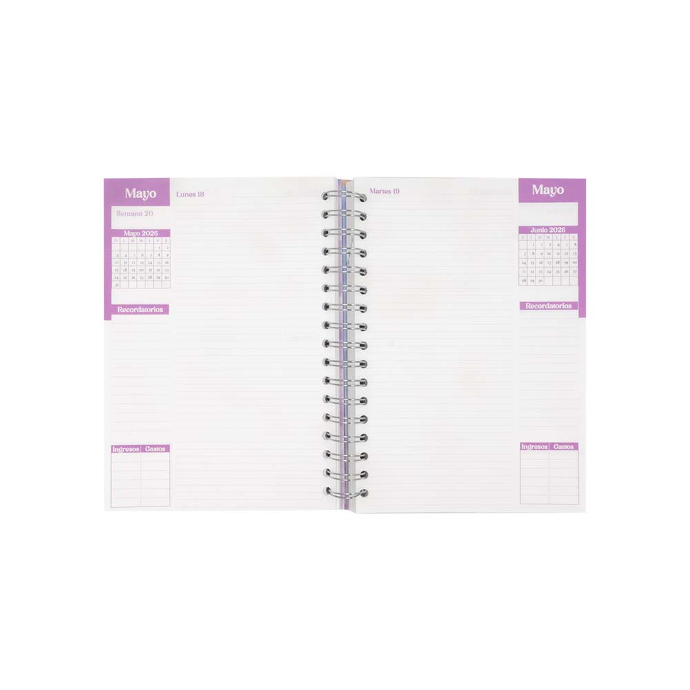 | Características | Agenda con espiral de pata dura con 352 páginas. |