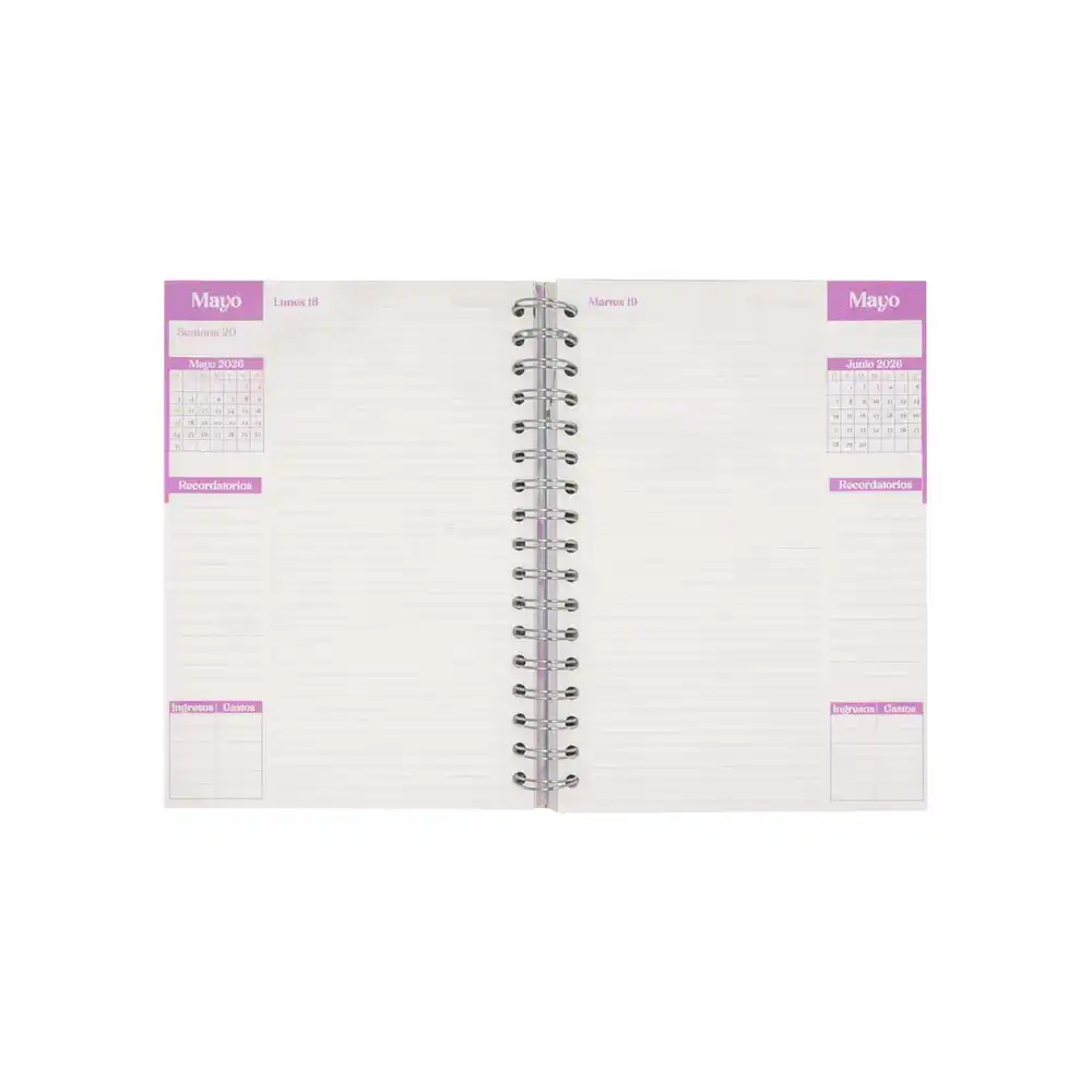 | Características | Agenda con espiral de pata dura con 352 páginas. |