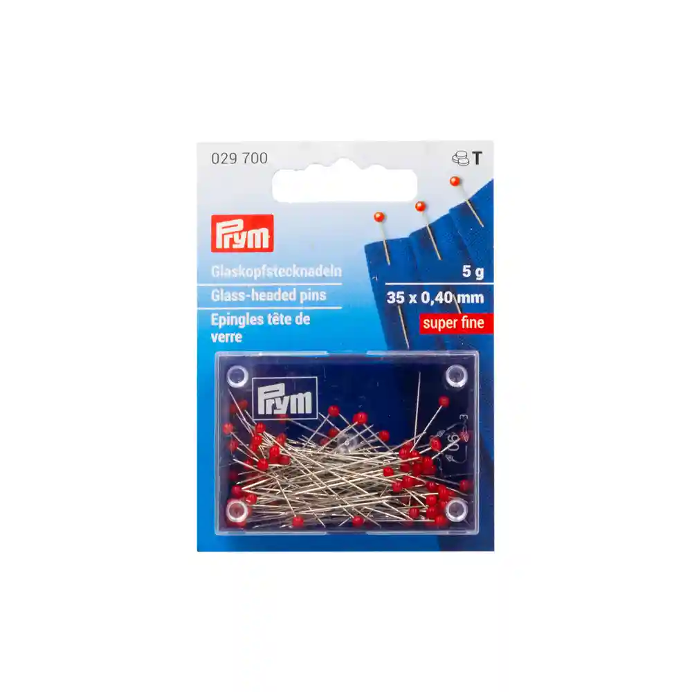 Los alfileres Prym con cabeza de vidrio son ideales para costura profesional y trabajos de precisión. No se derriten con calor y ofrecen un agarre seguro. Perfectos para telas delicadas. Incluye 5g de alfileres en estuche práctico.