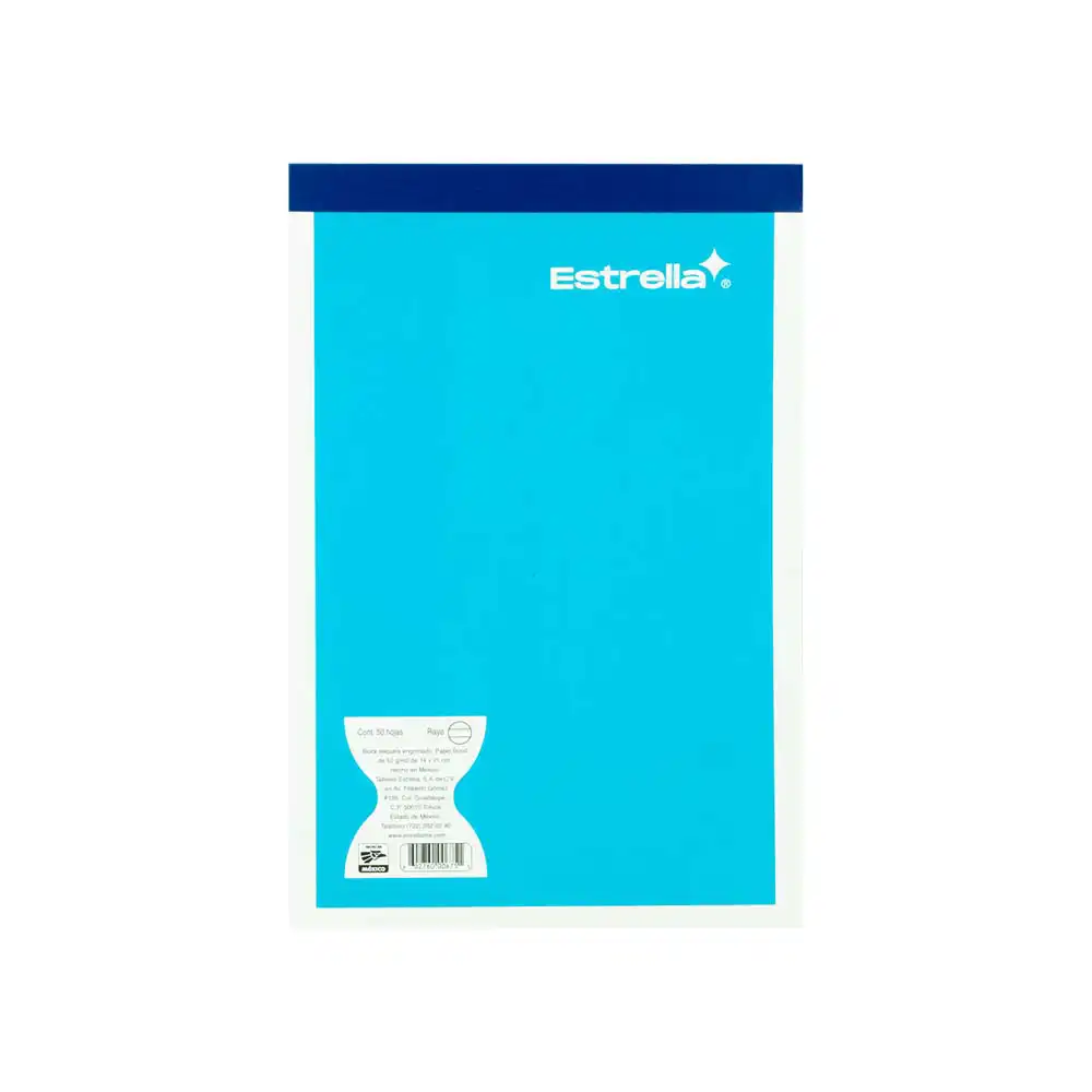 | Características | Block tamaño esquela. Tapa con barnizado brillante. Lomo engomado con cinta Telflex en color azul |
