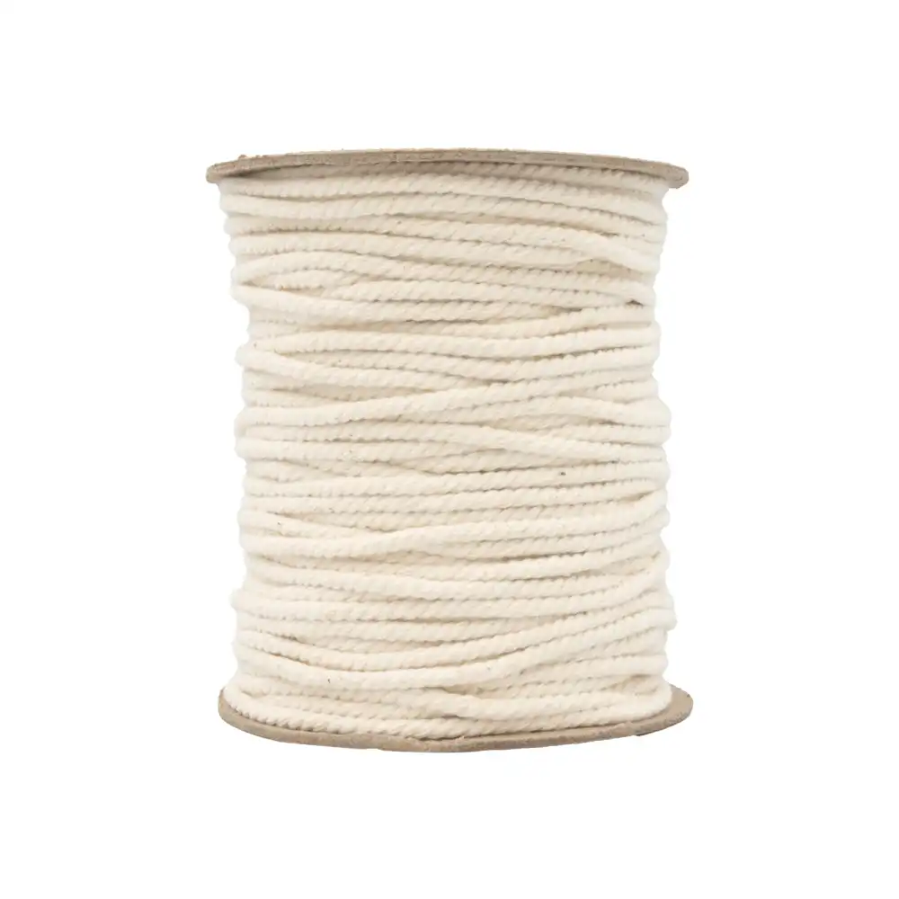 Cordón de algodón blanco ideal para manualidades, macramé y proyectos decorativos. Su textura suave y natural lo hace perfecto para trabajos artesanales, empaques y detalles creativos.