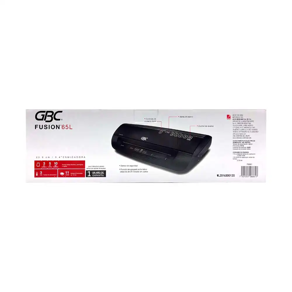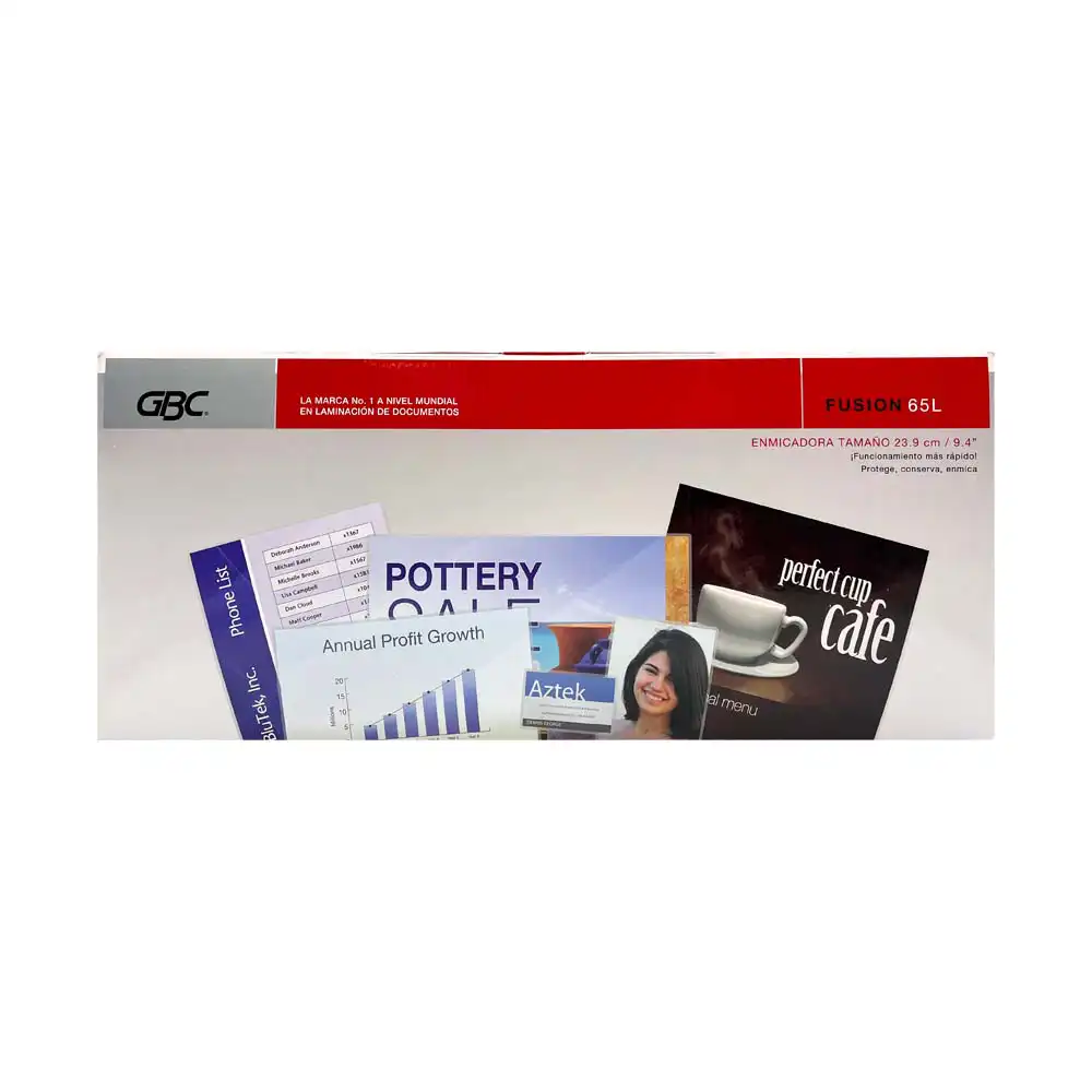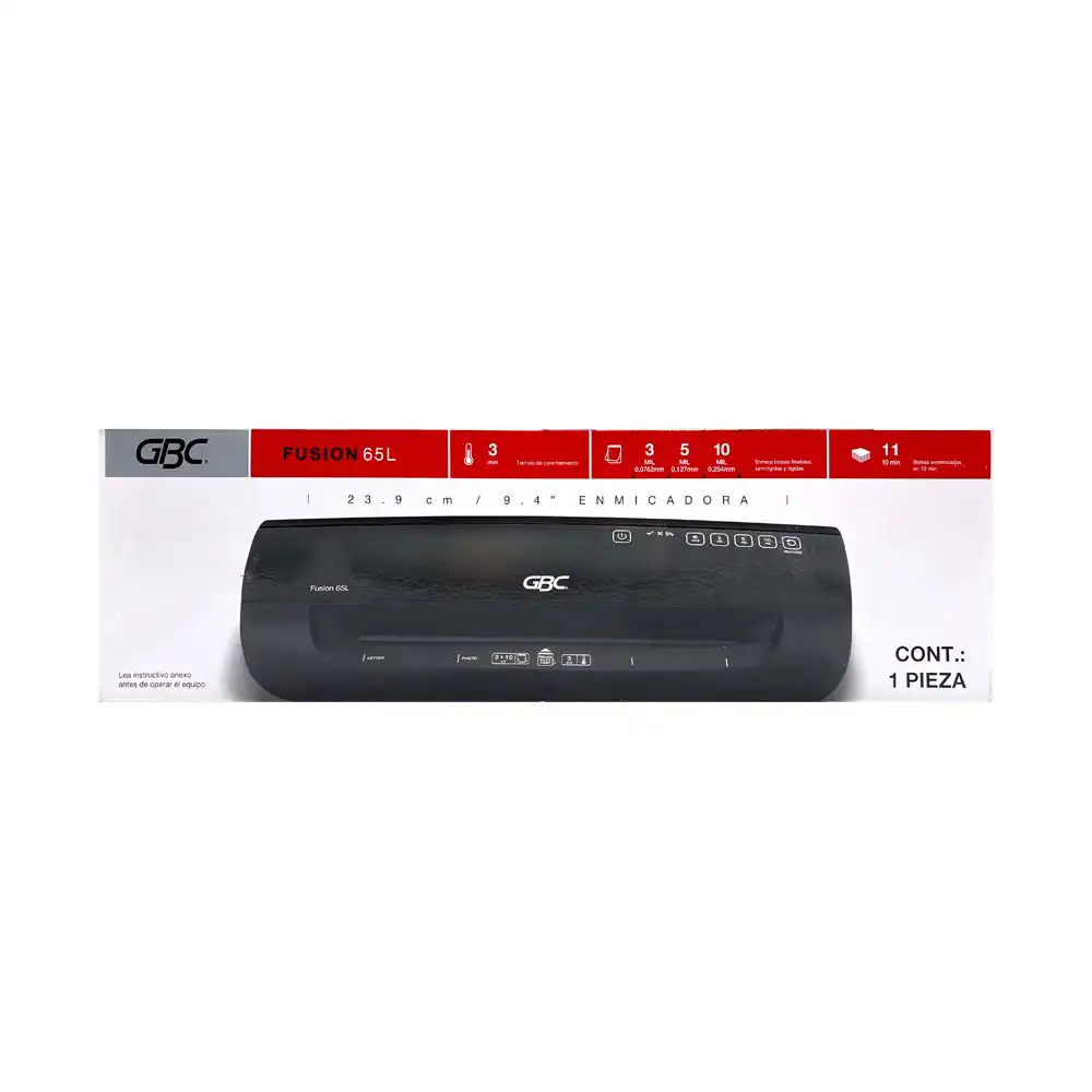 Enmicadora GBC Fusion 65L ideal para oficina, negocio o uso profesional. Enmicadora térmica rápida y fácil de usar, perfecta para proteger documentos con acabado profesional. Compatible con diferentes grosores de micas.