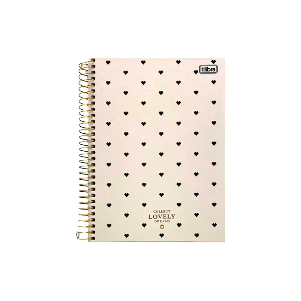 Cuaderno Tilibra con diseño moderno de corazones, ideal para escuela u oficina. Espiral resistente y hojas de excelente calidad para escritura cómoda.