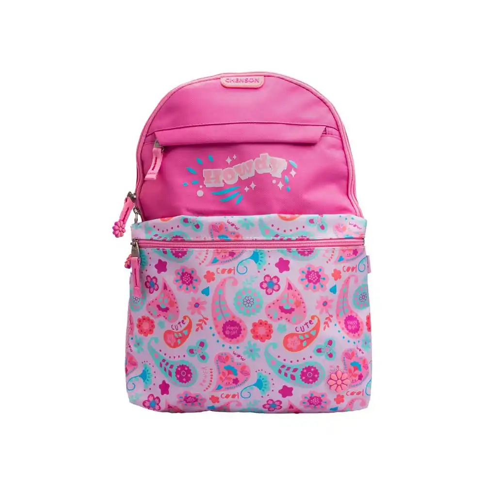 Mochila Chenson rosa con diseño paisley y flores. Alegre y femenina, perfecta para la escuela.