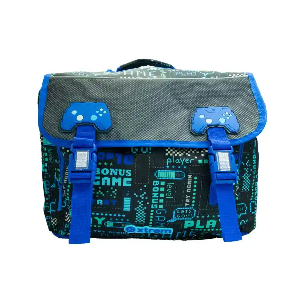 Mochila tipo portafolio con broches y diseño gamer. Ideal para niños amantes de los videojuegos. Marca Xtrem.