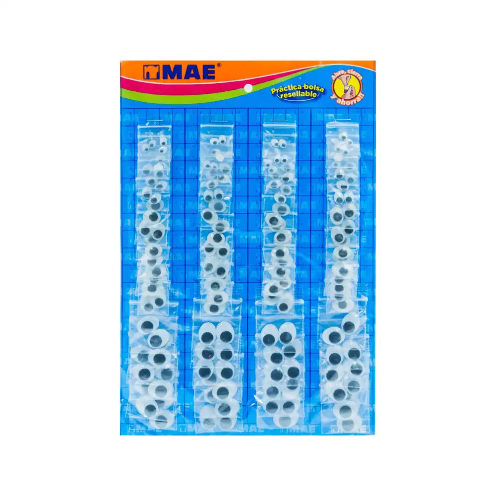 Ojos móviles MAE ideales para manualidades y proyectos creativos. Perfectos para dar vida a figuras, trabajos escolares y decoraciones.