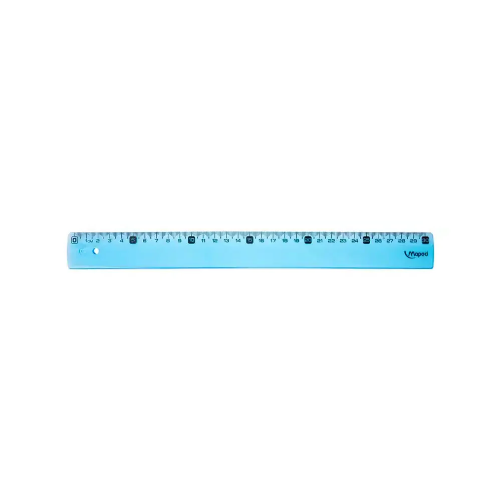 Regla de plástico resistente marca Maped de 30 cm en color azul, ideal para uso escolar, profesional y manualidades. Ligera, durable y con medidas precisas